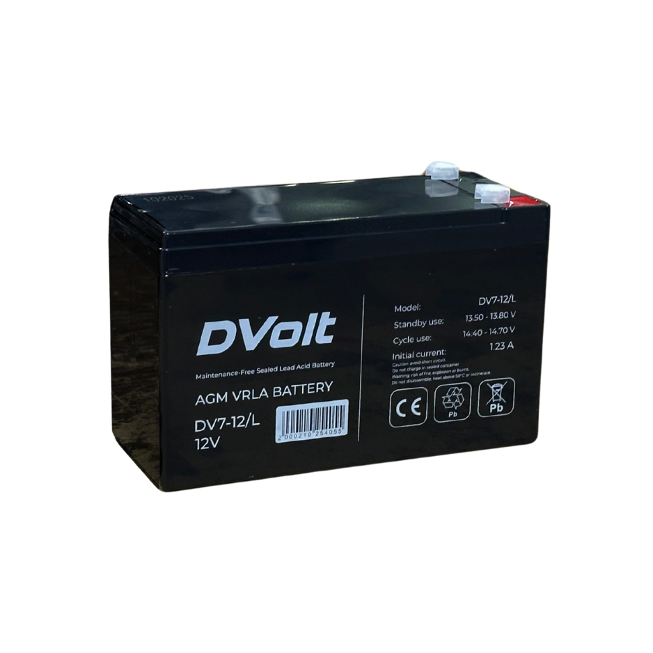 Аккумуляторная батарея 12В, 7 А/ч. Типы клемм: F1. Рабочая температура: от -10°С до +50°С. Температура хранения: -20°С до +50°С. Размер (ДхВхШ): 151x94x65 мм. Вес: 1,78 кг.