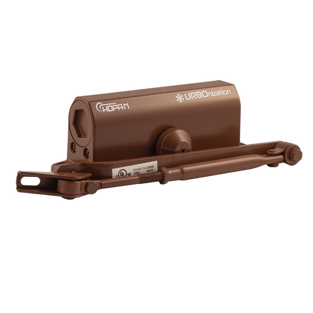 Предназначен для дверей от 50 до 120 кг. Универсальный (подходит для установки на двери левого и правого открывания). Морозостойкий - от -45 до +60 °С. Ресурс работы не менее 750 000 циклов. Сертификат ГОСТ для противопожарных дверей. 2 вида крепежа - для металлических, деревянных и пластиковых дверей. Материал корпуса - силумин, детали внутреннего механизма - из высокопрочной стали. Цвет: коричневый.