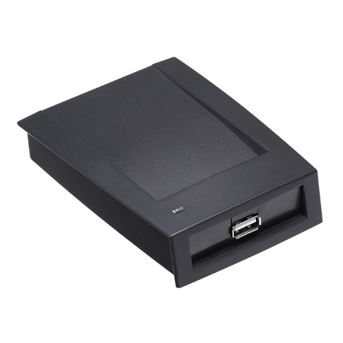 Считыватель карт Mifare настольный. Дальность считывания 3-5 см. Устройство подключается через интерфейс USB к компьютеру. Материал корпуса: Пластик.
