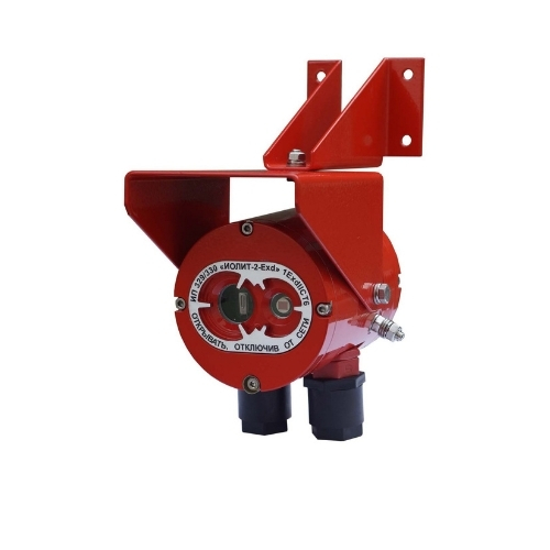 Извещатель пожарный пламени взрывозащищенный, 1ExdIIСT6, ИК+УФ, двух или четырехпроводная схема подключения, RS-485, дальность зоны обнаружения 25 м х 90°, U-пит.5...28 В, I-потр.400 мкА, предустановленные тактики, IP67, t-раб.-55...+55°С, 230х210х120 мм. Два кабельных ввода G1/2.